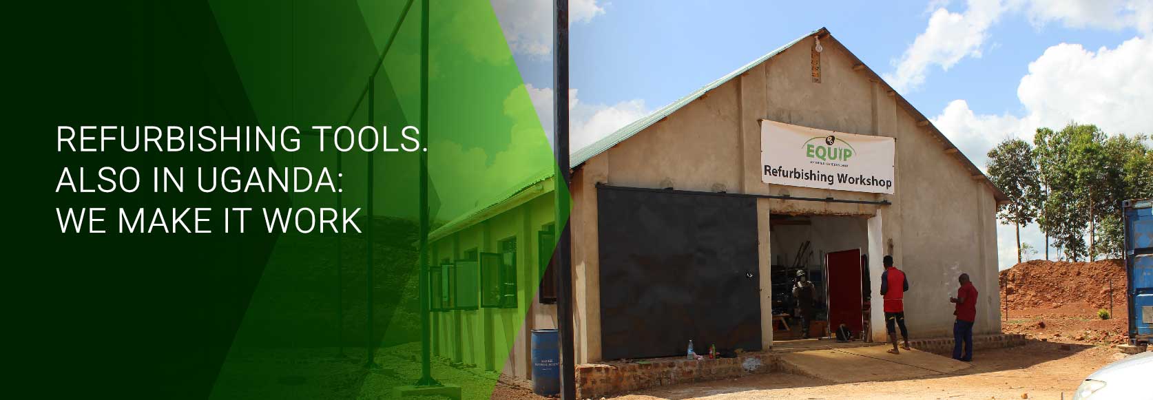 In Mpigi, Uganda, stands a building with white painted walls, a green pointed roof and a wide entrance. Above this entrance is a banner with the text “EQUIP by Gered Gereedschap. Refurbishing Workshop”. Refurbishing: because this newly opened building is one of the refurbishing workshops that Gered Gereedschap has set up together with local organisations in Uganda: These workshops are an addition to the refurbishing workshops in the Netherlands, which will of course continue to exist as the core activity of Gered Gereedschap.