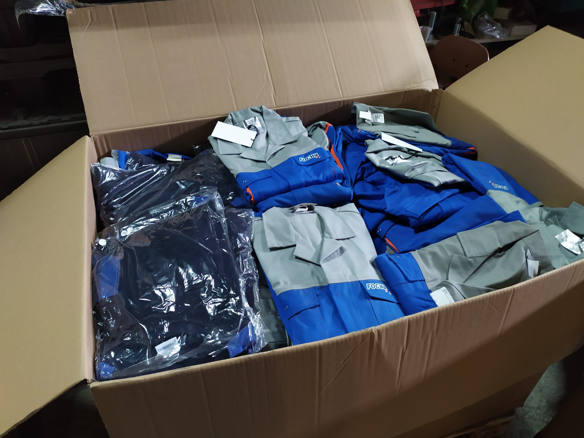 Of we een mooie bestemming hadden voor 554 overalls, 177 werkbroeken, 267 t-shirts en polo’s, 50 jassen, 166 sweaters shirts en 60 stofjassen met FOCWA opdruk? Dat was de vraag vanuit BOVAG onlangs. Natuurlijk konden we daar positief op antwoorden!