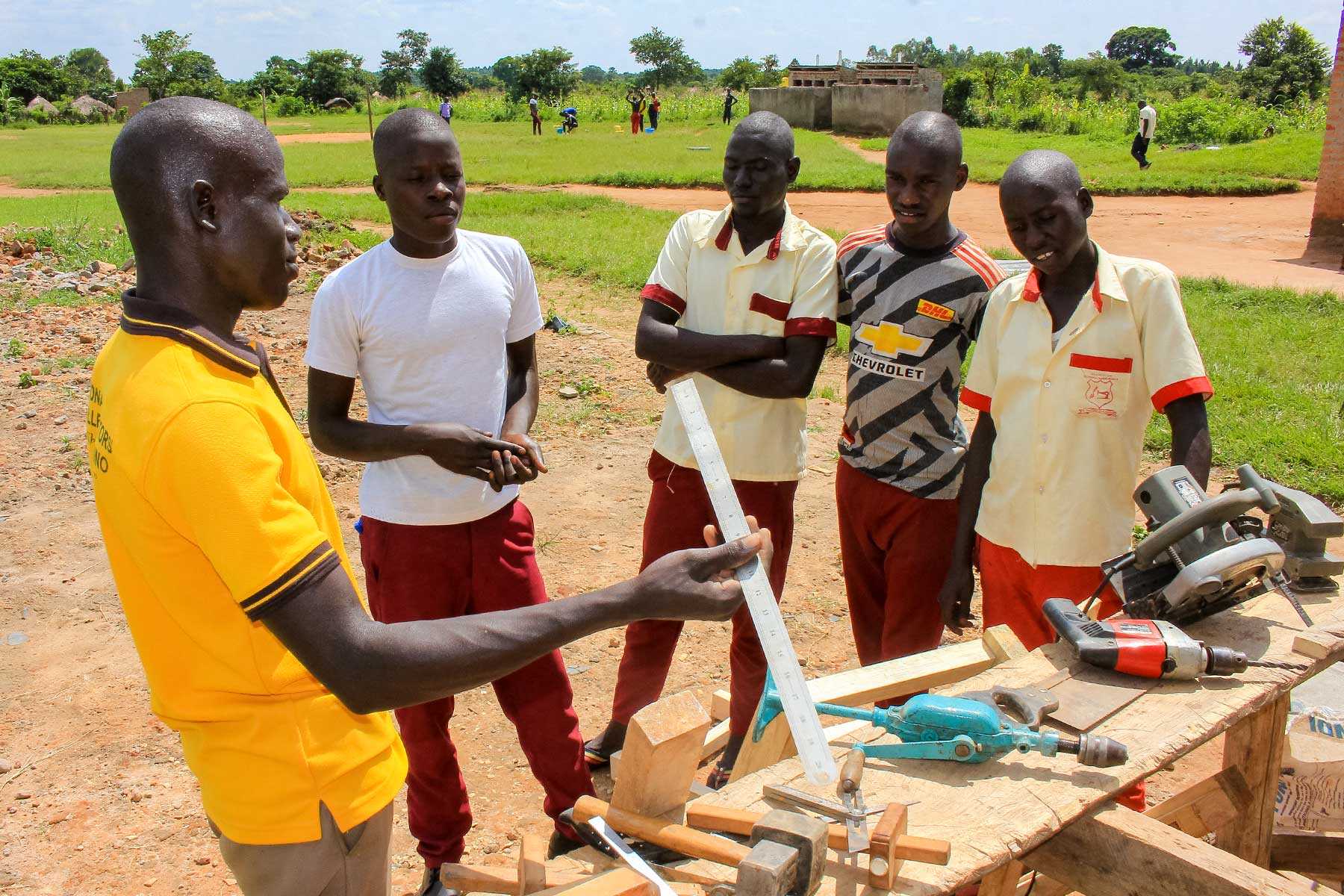 We ondersteunen onze studenten na het volgen van hun opleiding bij het vinden van werk. We hebben contact met veel eigenaren van lokale bedrijven en we verwijzen hen vaak door, ook voor eventuele stageprogramma’s. Mooi voorbeeld is Obal Desmond uit Oyam. Hij is een van onze studenten die van 2019 tot 2022 zijn opleiding Blokleggen en Betonpraktijken (BCP) heeft gevolgd en goed presteerde op het examen. Dit alles was mogelijk dankzij de gereedschappen en machines van Gered Gereedschap die het lesgeven en leren voor de studenten op het instituut vergemakkelijkten. Nu werkt Obal Desmond bij een bouwbedrijf en verdient hij een inkomen waarmee hij met zijn gezin kan onderhouden. Die zelfredzaamheid, daar doen we het voor!’