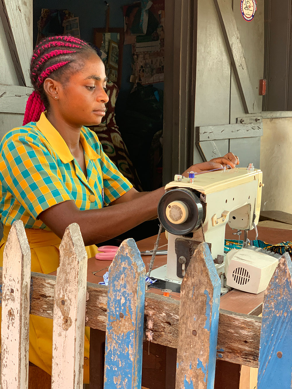 Sommige leerlingen gebruiken de gereedschappen en machines van Gered Gereedschap ook al om inkomen te verdienen.Eén mooi voorbeeld daarvan is Fela Sandra, 22 jaar. Sandra stopte op 19-jarige leeftijd met school vanwege een ongewenste zwangerschap. Na de bevalling kon ze niet meer naar school. Via Ene’s Apprenticeship Support Program (ASP) werd Sandra ingeschreven voor een stage om te leren naaien. Nu staat Sandra op het punt haar stage af te ronden. Met behulp van de naaimachine kan ze voor mensen thuis werken om wat inkomen te verdienen. Zij slechts een van vele die we gaat profiteren van deze mooie samenwerking!’